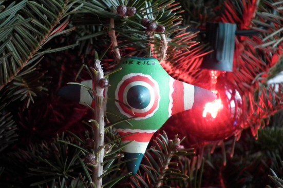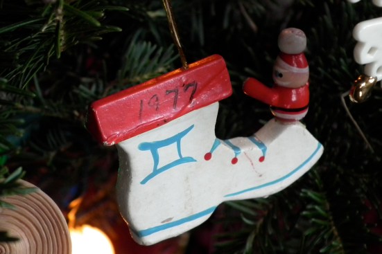 It is still around but unfortunately unable to retain a hook anymore. It is also so delicate that we’ve apparently stashed it somewhere so safe that I don’t know exactly where it is. I certainly would have included it, just as I did, for instance, the Mexico ornament that is both dateless and meaningless to probably everyone here. We bought it on our honeymoon…