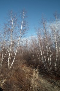 Away from the water, the stands of Paper Birch stood out in stark relief against the blue sky. I would imagine these would be even more impressive during the autumn when their leaves turned red. The undergrowth wasn’t so much that you couldn’t step off the sandy trails to explore, literally, off the beaten path.