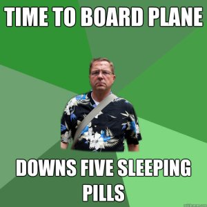 So now it’s my fault that he has to sit next to me and my family, that he doesn’t have a window seat, and that he can’t drug himself into a stupor for six hours or so.