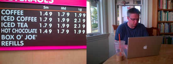 After taxes, my large iced coffee cost exactly $2.34. I have three cents left over to do with as I please!