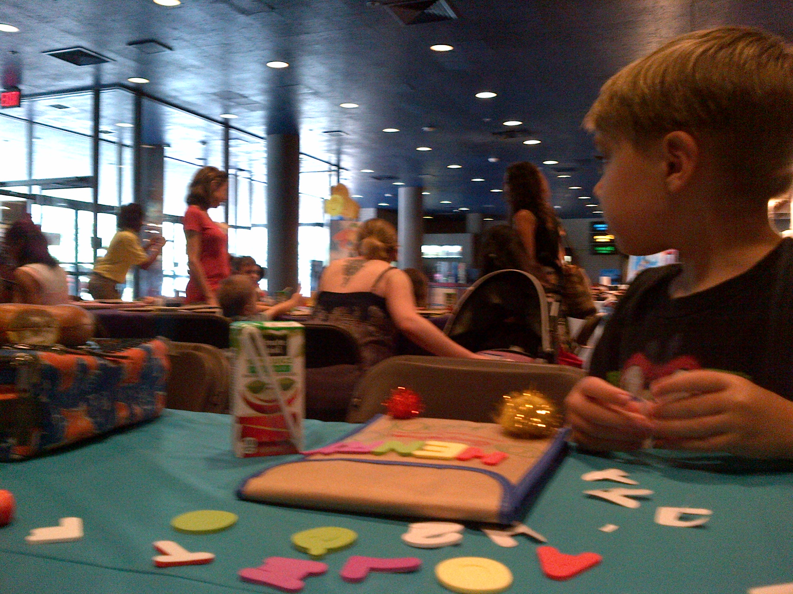 I chatted with her briefly and then Henry and I got down to gluing and stickers and the like while I picked my way through some danish and Henry took one bite of his bagel.