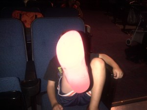 Henry and I sat near the front. I was one seat behind him because I wanted to see how he would interact with the film. He has been to theaters any number of times and we’ve never had any issue with his getting restless or otherwise inappropriate (I’m sure Viselman would hate my using that word.) I explained to him that he was allowed to get up and dance and sing and act however he wanted. He told me he didn’t want to. He just planned to sit. I told him, as Kenn had told us, that kids were just as welcome not to interact though he admitted he came to that only grudgingly.
