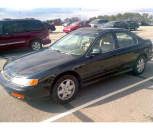 Nobody would ever tell you that my green Honda Accord was a sporty car. No one ever mistook it for a Mercedes, but that was one great car. It was a V6 with leather and a nice sound system. It had power seats and a moonroof. It was an extremely nice car to drive around in. I bought it off lease. It was two years old and had about 25,000 miles on it.