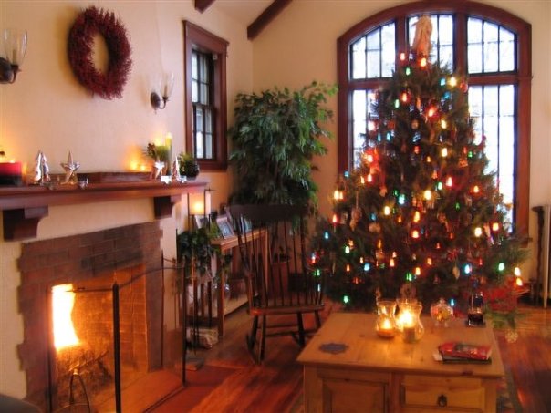 We have a very nice living room. It was, in fact, the room that pretty much sold us buying this little house up on the hill. It has a beamed ceiling that is over eleven feet tall, a beautiful fireplace with a grand mantle, hardwood floors laid out in a concentric pattern, and an enormous arched window that is the defining characteristic to the entire house. It is warm and welcoming room and we spend the bulk of our time in it when home.